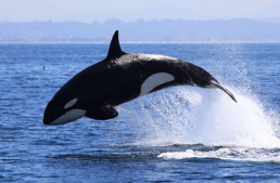 快看,几头健壮的“不明物体”冲过来了!随后几个黑白身影如闪电般跃入我们的视线,又马上消失。这就是惹人喜爱的“游泳健将”——虎鲸。