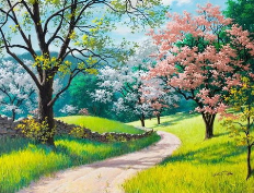 最妙是傍晚的春色。归鸟的剪影掠过黛色山峦,晚霞把云朵染成橘子汽水的颜色。我躺在草坡上数风筝,蝴蝶状的、老鹰样的,线轴在孩子们手里转成花。不知谁家飘来炊烟,混着新翻泥土的气息,还有妈妈唤我回家的声音,像根温柔的线,牵着我的心往家门的方向飘。