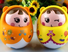 小时候,奶奶家的玻璃柜里总摆着一个胖墩墩的不倒翁。它穿着红色小褂,戴着尖尖帽,脸上两团腮红像刚蒸好的寿桃。我总爱把它推倒,看它在桌面上跳滑稽的舞蹈——左摇右晃,却总能在最后一刻挺直腰杆,咧着不变的笑脸望着我。