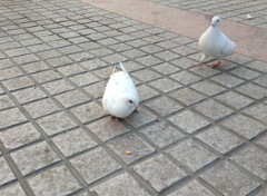 有只白鸽格外大胆。它跳上我的手腕,红宝石般的眼睛直视着我,毫无惧色。我屏住呼吸,生怕惊扰这位不速之客。阳光穿透它半透明的耳羽,泛出淡淡的粉,仿佛披着一身碎金。它吃饱后并不急着离开,反而歪头梳理羽毛,姿态优雅得像位绅士。