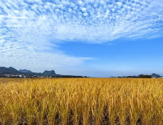 最引人注目的,是那望不到边的稻田。曾经青翠的秧苗,如今已换上了金色的盛装。沉甸甸的稻穗低垂着头,仿佛在向大地母亲致谢。秋风拂过,稻浪翻滚,沙沙作响,那是大地在演奏一曲丰收的乐章。远处,收割机轰鸣着穿梭其间,将一茬茬饱满的稻谷收入囊中。农民伯伯站在田边,古铜色的脸上绽放出憨厚的笑容,眼角的皱纹里藏着一整年的期盼与辛劳。