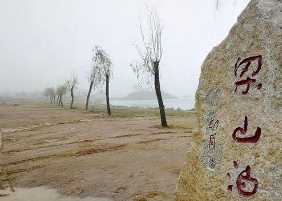 我原以为,梁山泊总该有些水泊的气象——至少得有一片开阔的水面,映着天光云影,岸边或许还有几株垂柳,几艘破旧的渔船。可眼前的梁山,却只是一座孤零零的土山,卧在广袤的平原上,没有水,连一条像样的河都看不见。山不高,坡度也缓,山脚下立着牌坊,红漆的柱子有些斑驳,上书“梁山泊”三个大字,倒像是提醒着游人此地曾经的浩瀚。