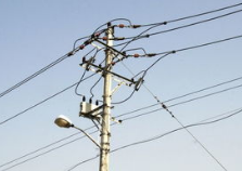 字面意思:电线杆很高,上面绑着鸡毛,做成很大的掸子。